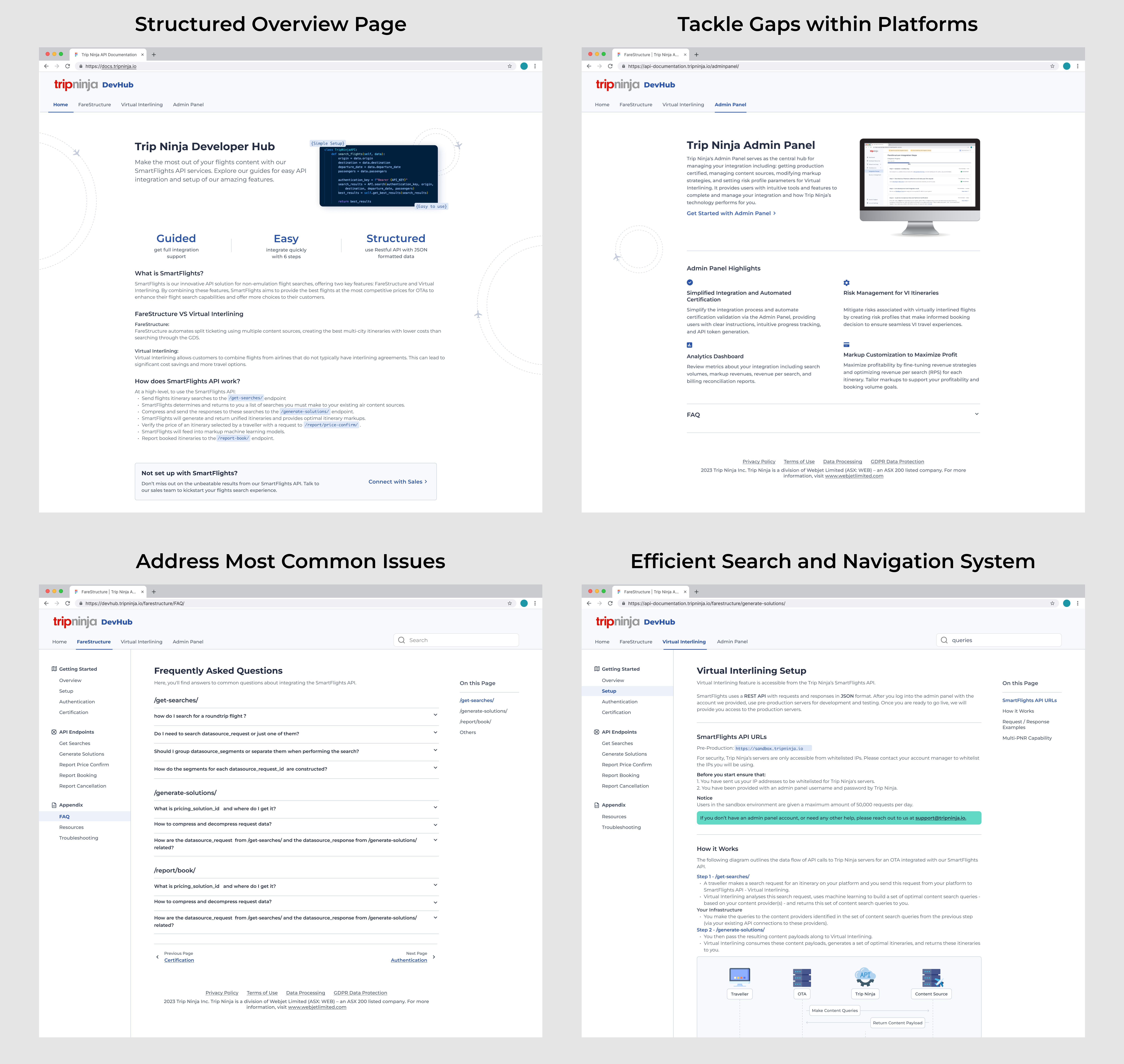 Reduced Engineering Overhead: By providing comprehensive and user-friendly documentation, the TripNinja API reduced the time TripNinja engineers spent on customer integration and communication by 70%, significantly improving team efficiency and focus on core development tasks.