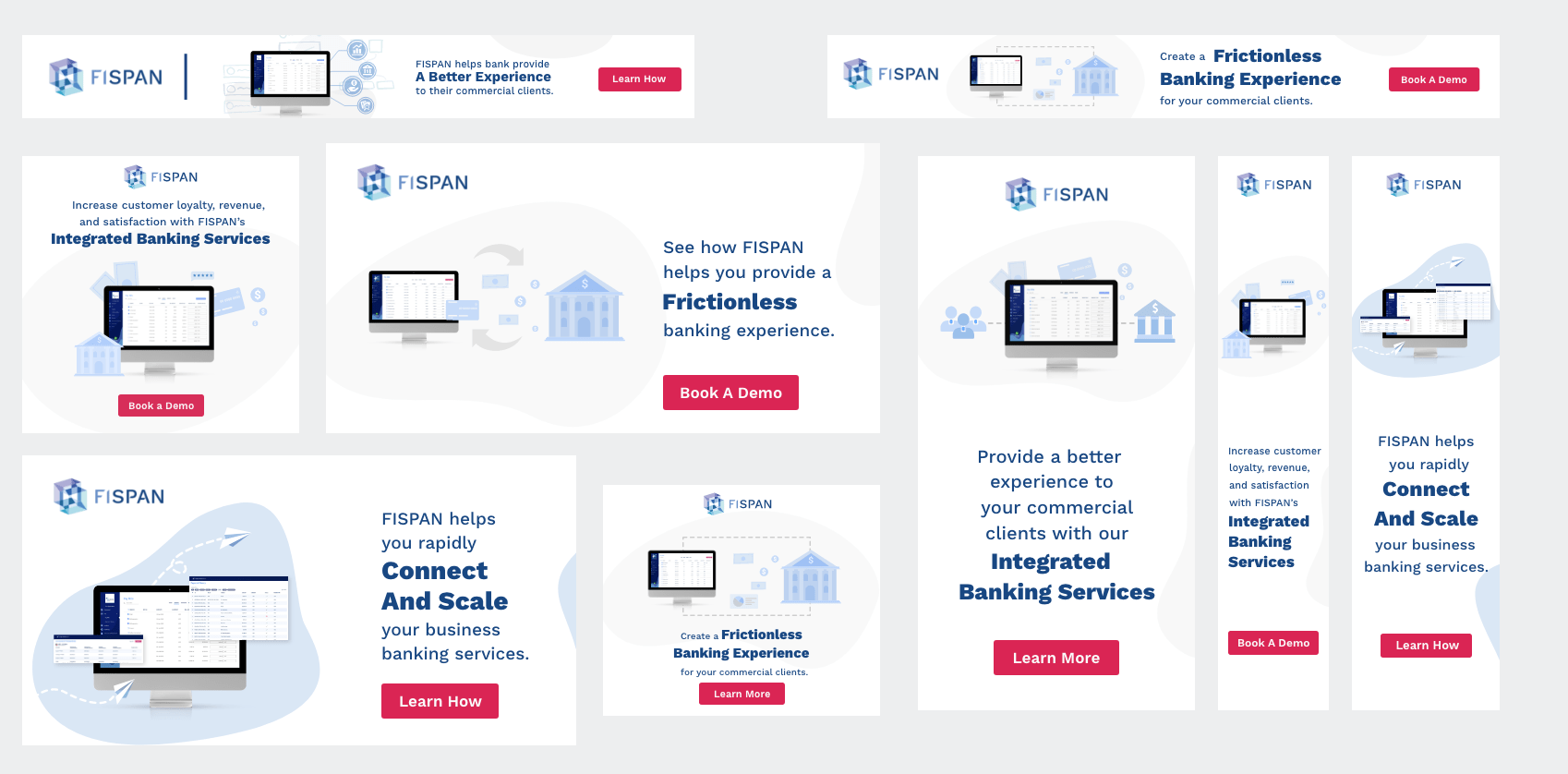 The ads should fit into the FISPAN modern and simple brand style. Use some simple flourish to make it attractive, but not too strong.